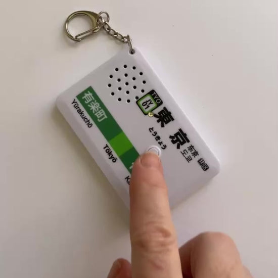 This station melody keychain plays a Tokyo station melody (departure melody) when you press the button. Choose between Tokyo Station (Keiyo line) and Takadanobaba (Yamanote line).