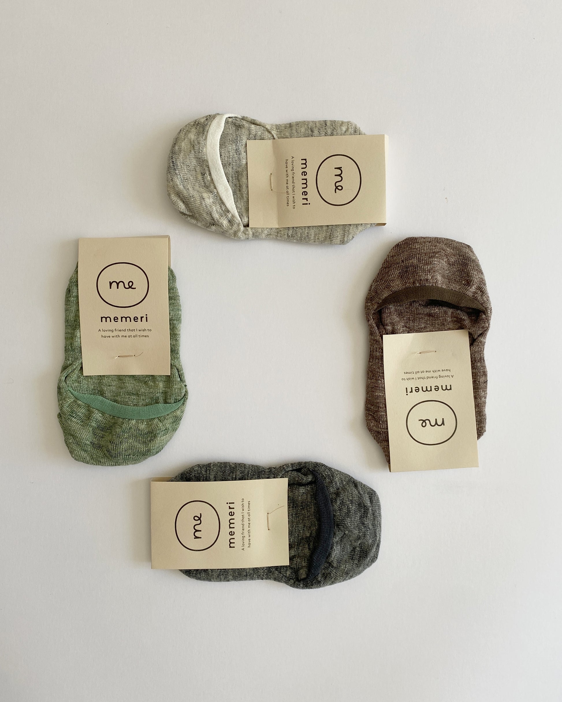 memeri harness years of knitwear knowledge and a rich heritage to produce high-quality but accessible products in cheerful colours. Dedicated to using only gentle and natural materials such as silk, wool, linen and cotton, all their products are manufactured in Japan. Memeri consider their socks and accessories to "be like a loving friend who always stays by your side," and you couldn't ask for better friends.