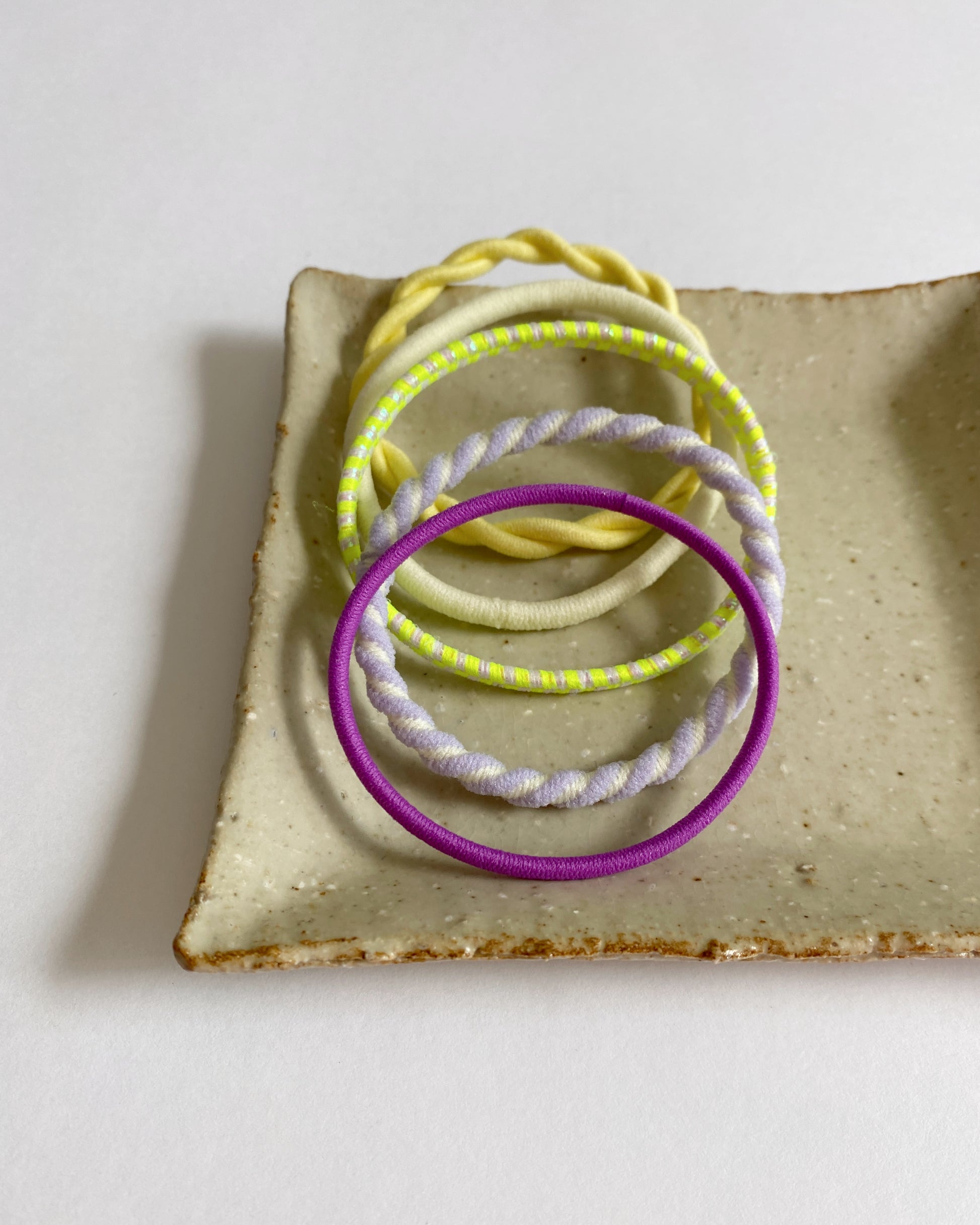 Made in Japan by elastic experts (using their patented seamless, snap-resistant join), each colour story includes five different hair ties.