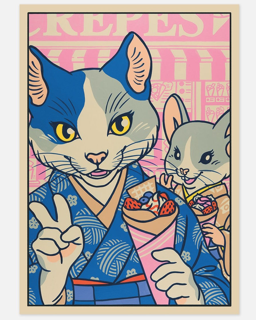 This print from yeaaah! studio combines whimsical imagery with nostalgic graphic style -artist Stéphan Casier studied in Japan and draws inspiration from the vibrant culture of anime. What a delight to receive in the letter box, brighten up your pin board, or why not frame a set that speaks to you?