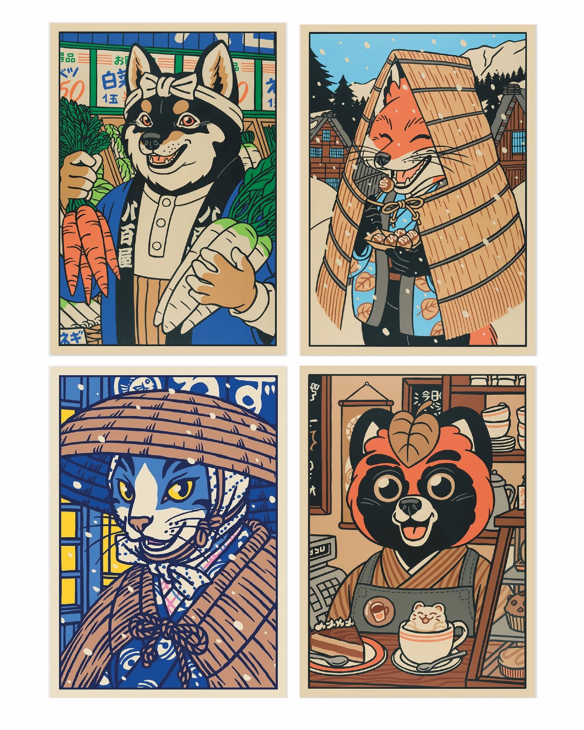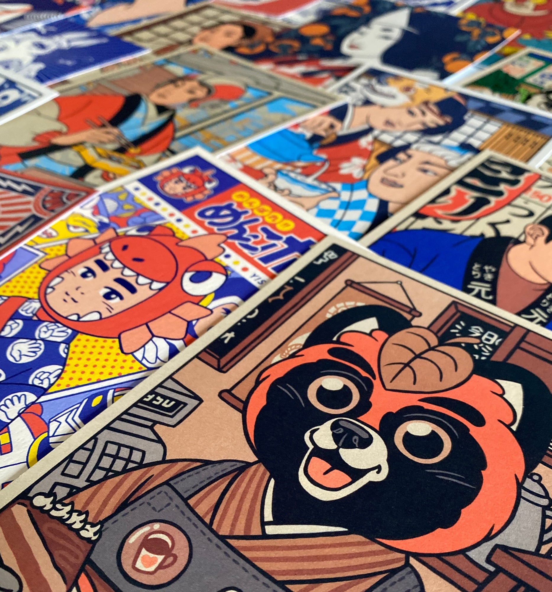 These postcards from yeaaah! studio combine whimsical imagery with nostalgic graphic style -artist Stéphan Casier studied in Japan and draws inspiration from the vibrant culture of anime. What a delight to receive in the letter box, brighten up your pin board, or why not frame a set that speaks to you?